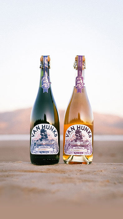 Im Keller arbeitet Van Hunks mit großem handwerklichem Anspruch. Die Grundweine werden kühl vergoren, sorgfältig assembliert und anschließend in der Flasche vergoren, bevor sie mehrere Monate auf der Hefe reifen. Das Ergebnis sind elegante MCCs mit feiner Perlage, klarer Struktur und aromatischer Tiefe. Van Hunks ist damit eine Marke, die sowohl im Handel als auch in der Gastronomie vielseitig einsetzbar ist und das wachsende Interesse an südafrikanischen Schaumweinen ideal bedient.